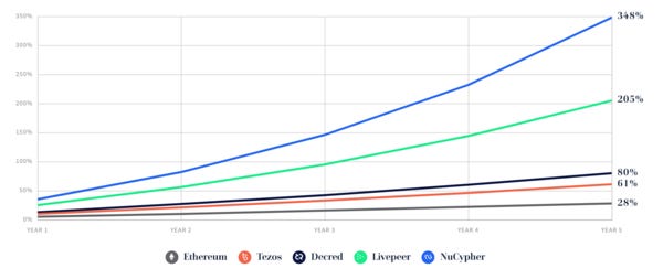 By the end of 2019, 25% of the entire cryptocurrency market will use proof-of-stake protocols for consensus. That means that given expected annual return rates, investors in these currencies can make a total of $2.5 billion annually.